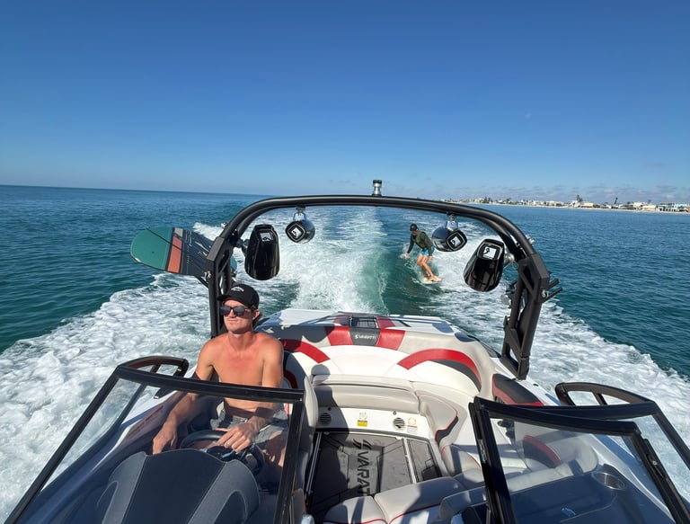 Step aboard our 2019 Varatti Z22. A premium wakeboat designed for both performance and comfort. Outfitted with plush upholstery, powerful inboard performance, and a fully customizable ballast system, the boat is tuned to create the perfect wave for every rider, beginner to pro.