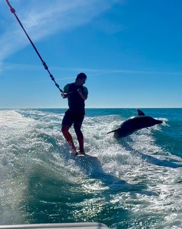 Book a surf session, dolphin cruise, or sunset charter with Saraboca Wave Co.